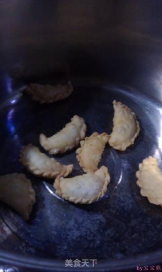 在锅中加入适量的油,待油热后,将包好的酥饺放入油中,炸至金黄酥脆即可。